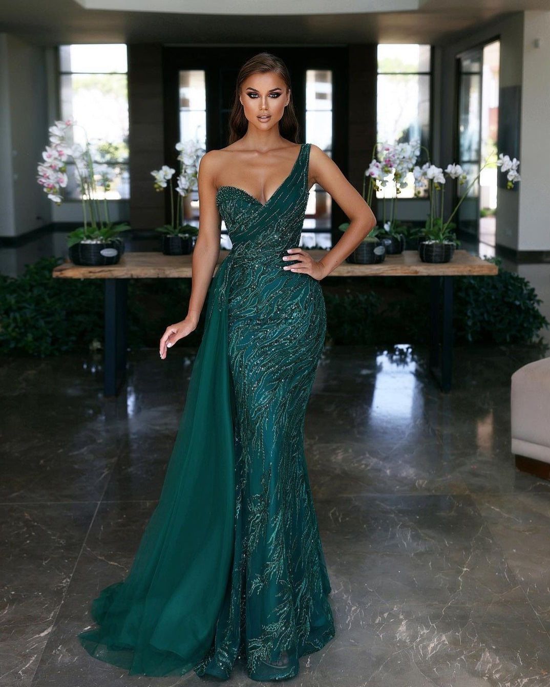 El vestido Julia Couture es una verdadera obra maestra de la moda elegante y sofisticada. Con un hermoso escote en v y un hombro tirante, este vestido resalta tus curvas con su corte ajustado y deslumbra con su detalle de pedrería en un vibrante tono verde esmeralda. La cola y el diseño quita y pon lo hacen perfecto para cualquier evento de gala. Con el Vestido Julia Couture, lucirás como una verdadera experta en moda.